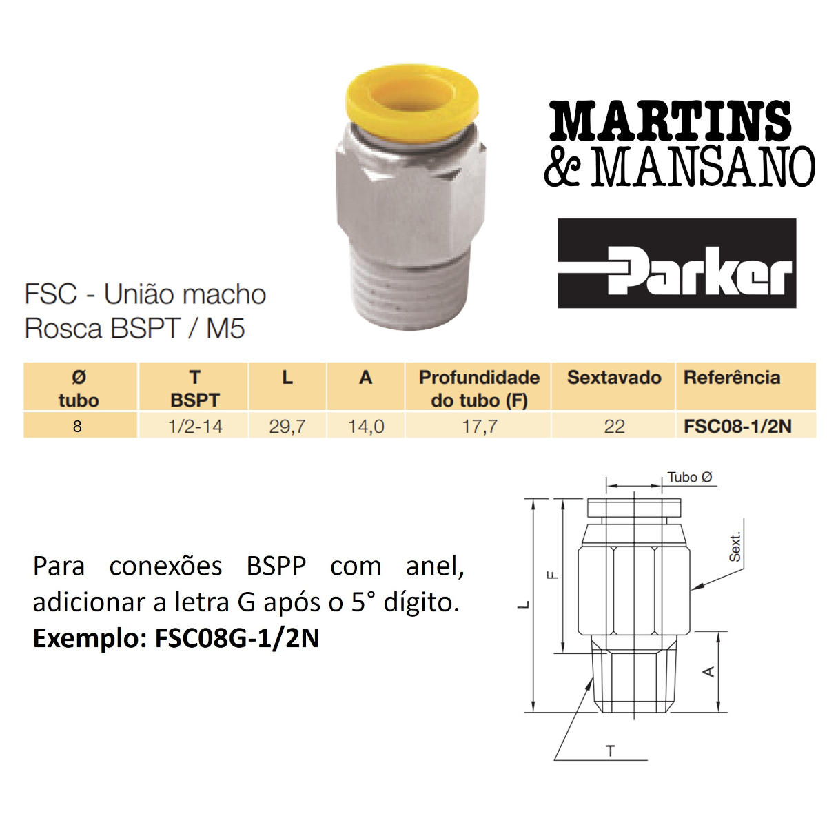 BAIXA PRESSÃO, PNEUMÁTICA, ROSCA 1/2, ROSCA BSPP, ROSCA MACHO, ROSCA POLEGADA, TUBO 8mm